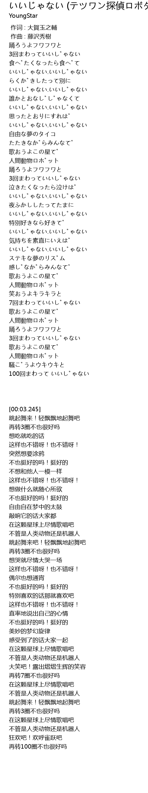 | Song | いいじゃない (テツワン探偵ロボタック) |