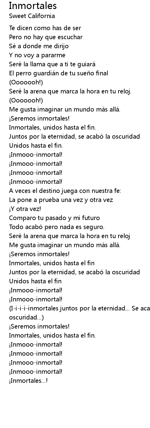 | [00:41.90] | Inmortales, unidos hasta el fin. |