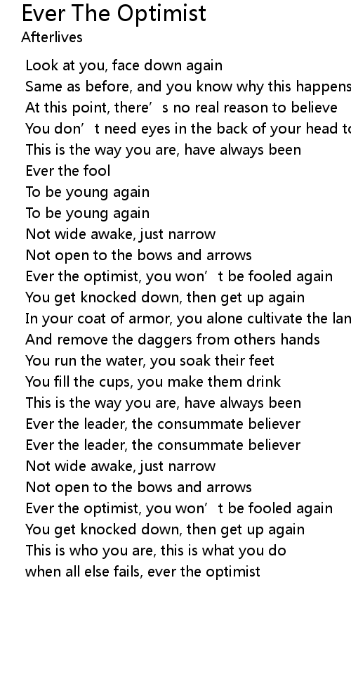 | Song | Ever The Optimist |