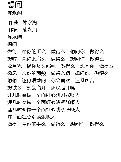 | [00:01.00] | 作词 : 陳永淘 |