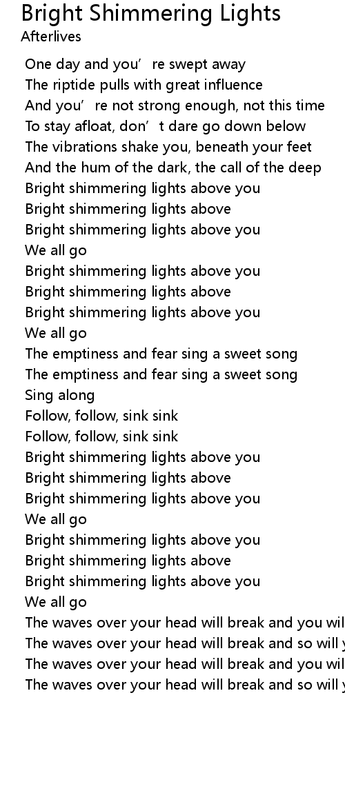 | Song | Bright Shimmering Lights |