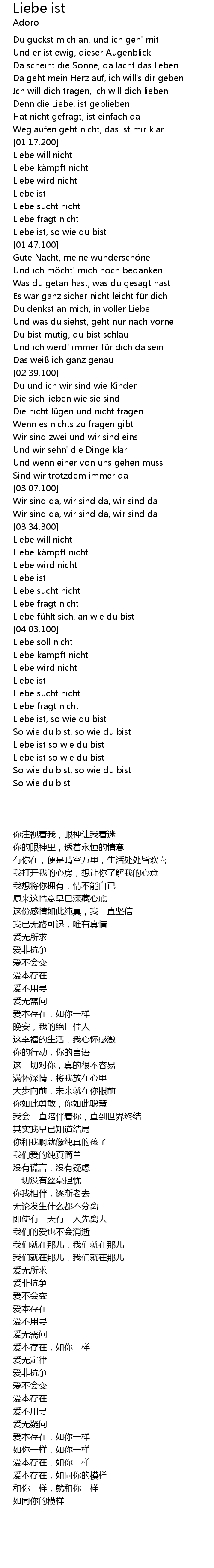 | [01:37.300] | Liebe ist, so wie du bist |