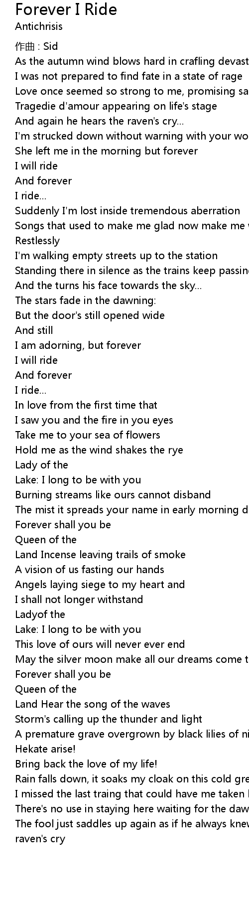 | The fool just saddles up again as if he always knew and again he hears the raven' s cry |