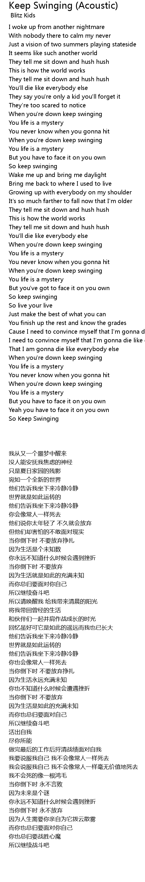 So Keep Swinging |