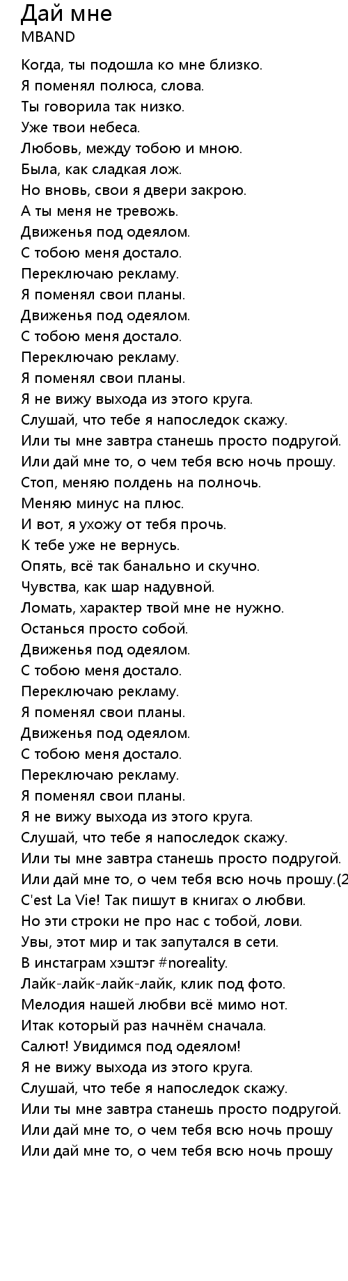 Или дай мне то, о чем тебя всю ночь прошу.(2х) |