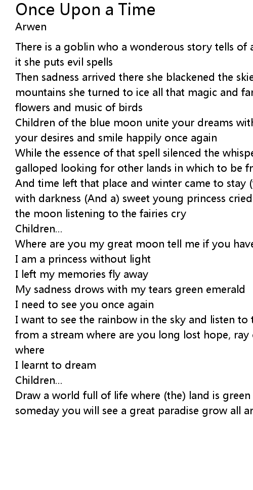 And time left that place and winter came to stay (the) mist covered the valley with darkness (And a) sweet young princess cried like no othr in the light of the moon listening to the fairies cry |