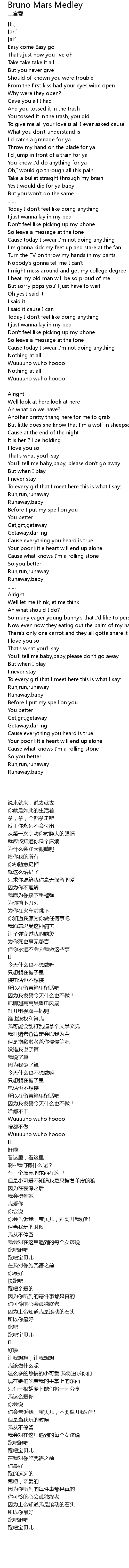 | Song | Bruno Mars Medley |