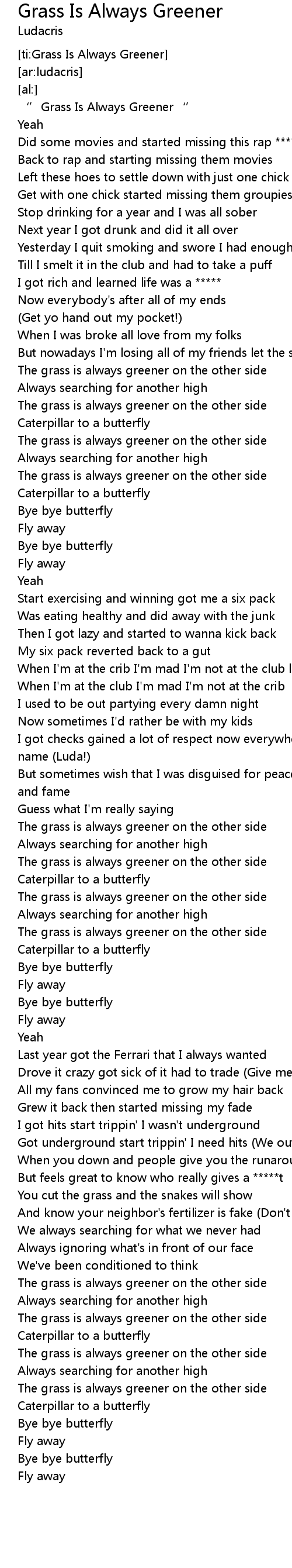 | [00:00.00] | ‘’Grass Is Always Greener‘’ |
