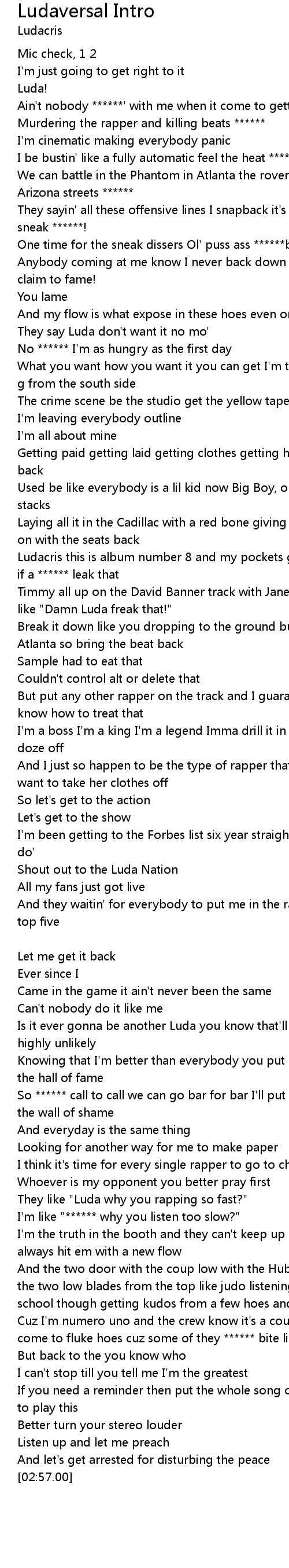 | [02:21.40] | They like " Luda why you rapping so fast?" |