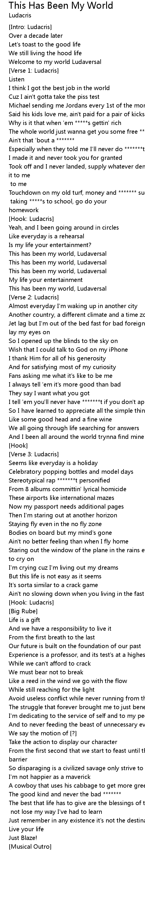 This has been my world, Ludaversal |