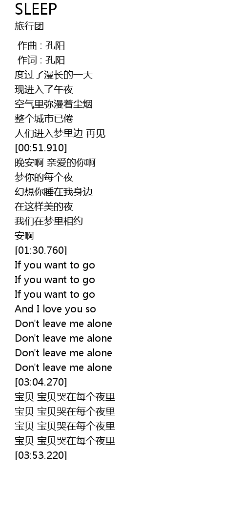 | [03:29.720] | 宝贝 宝贝哭在每个夜里 |