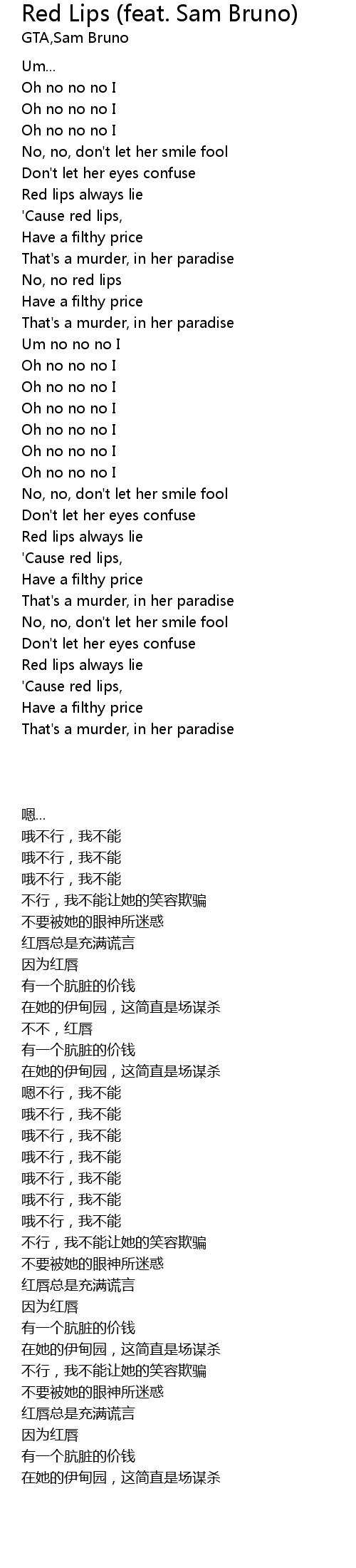 | [00:50.89] | No, no red lips |