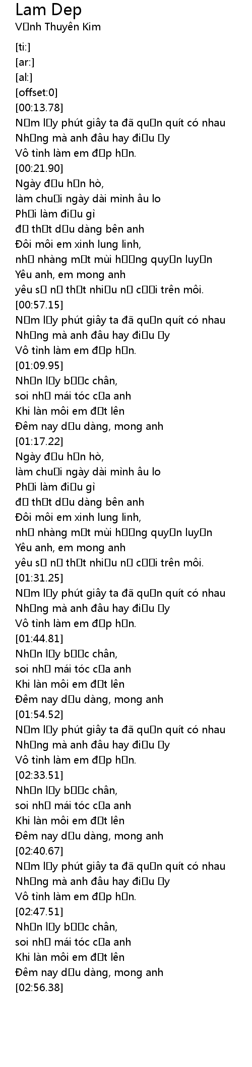 | [02:45.85] | Vô tình làm em đẹp hơn. |