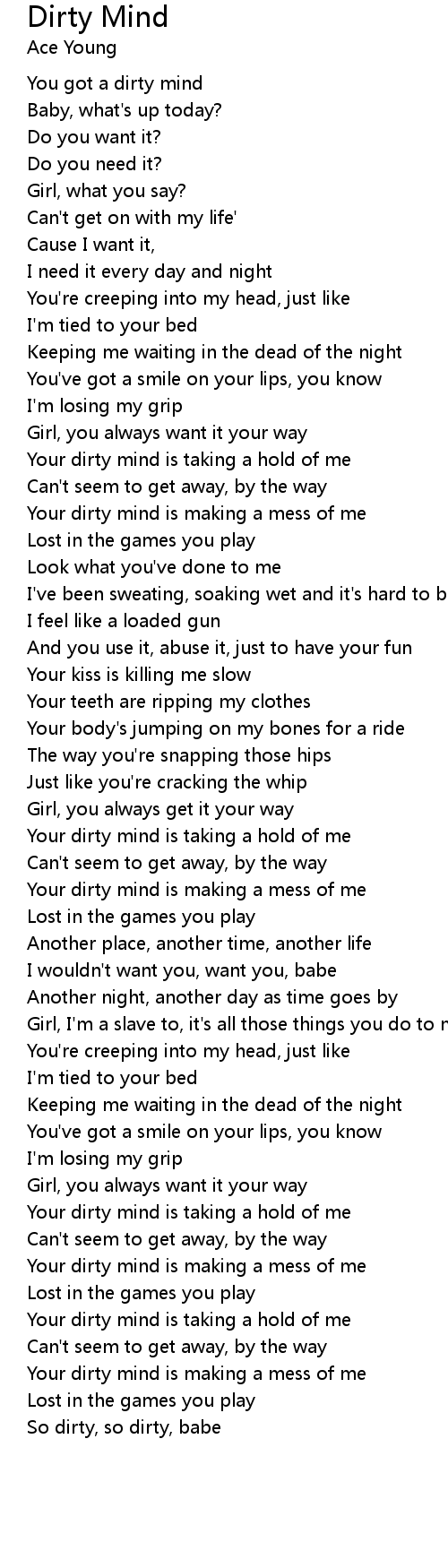 | Your dirty mind is taking a hold of me | |
