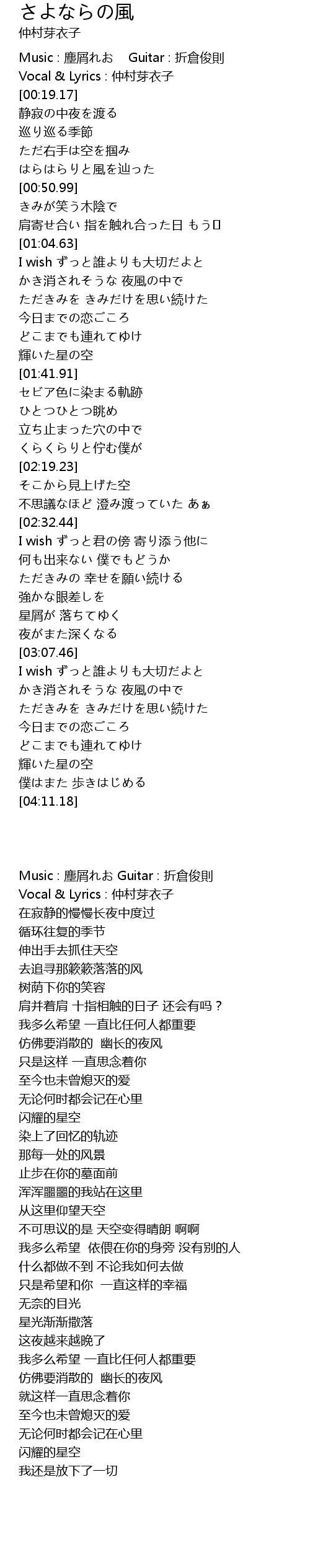 | [02:32.95] | I wish ずっと君の傍 寄り添う他に |