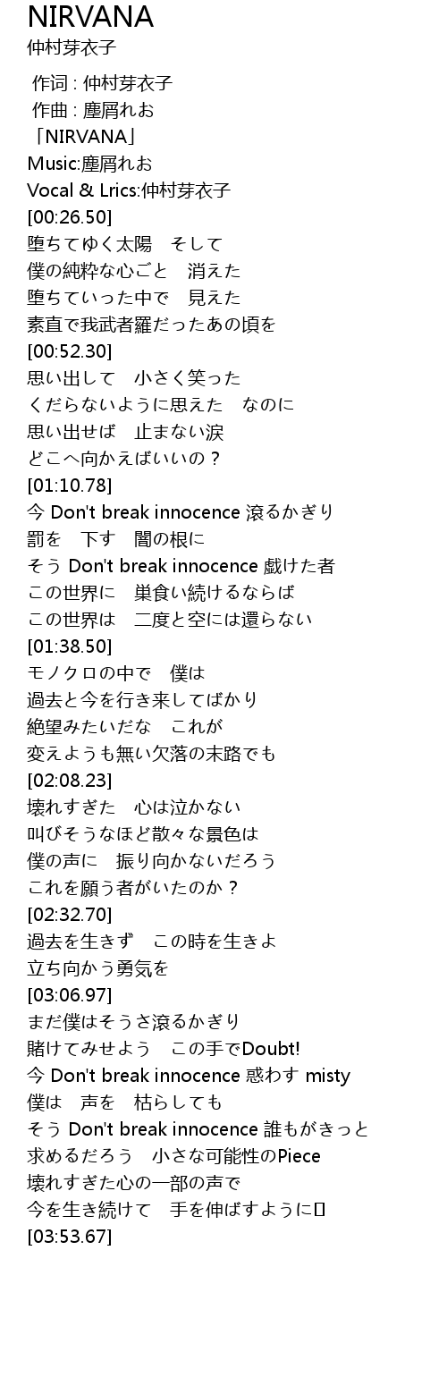 | [00:01.20] | 「NIRVANA」 |