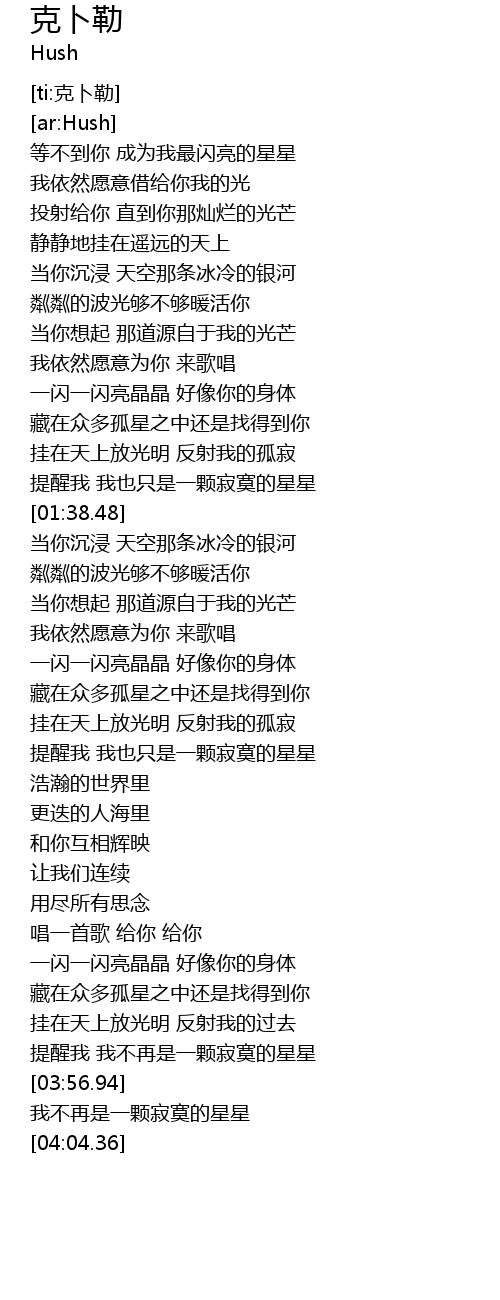 | [03:48.19] | tí xǐng wǒ wǒ bù zài shì yī kē jì mò de xīng xīng |