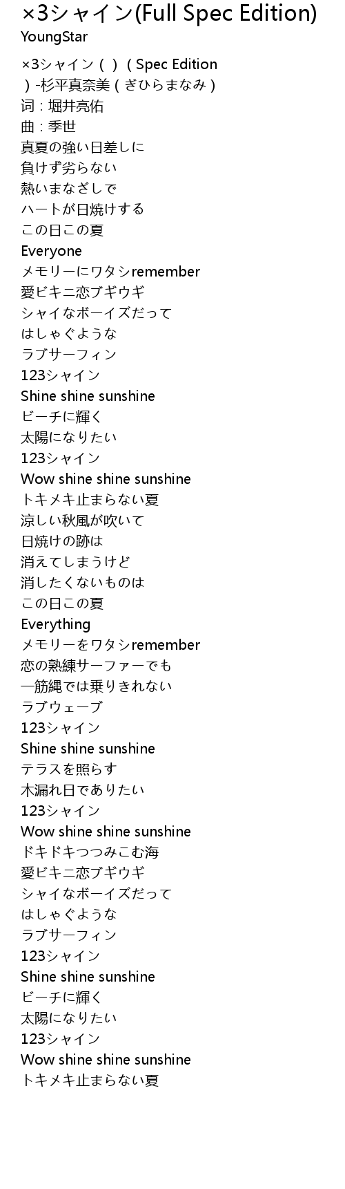 | [00:00.00] | ×3シャイン()(Spec Edition )-杉平真奈美(ぎひらまなみ) |