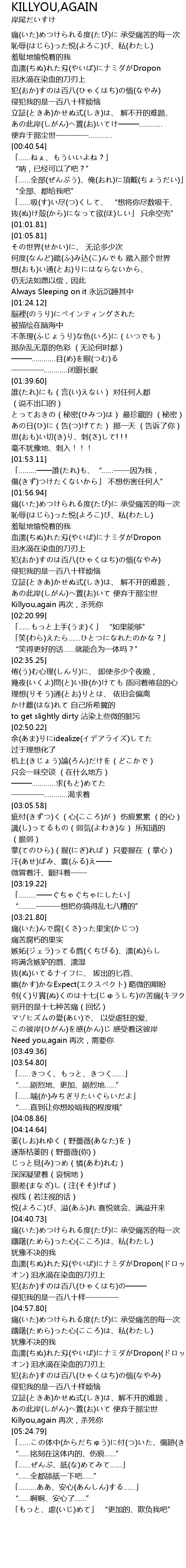 | [05:20.80] | Killyou,again 再次,杀死你 |