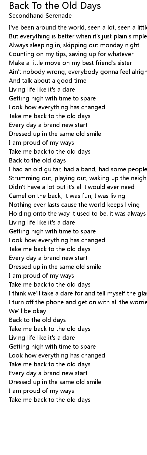Take me back to the old days |