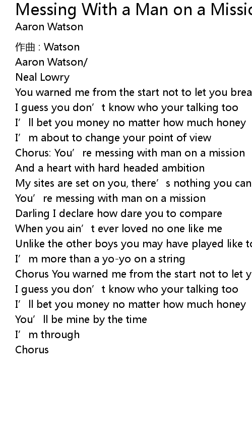 | Chorus: You' re messing with man on a mission | |