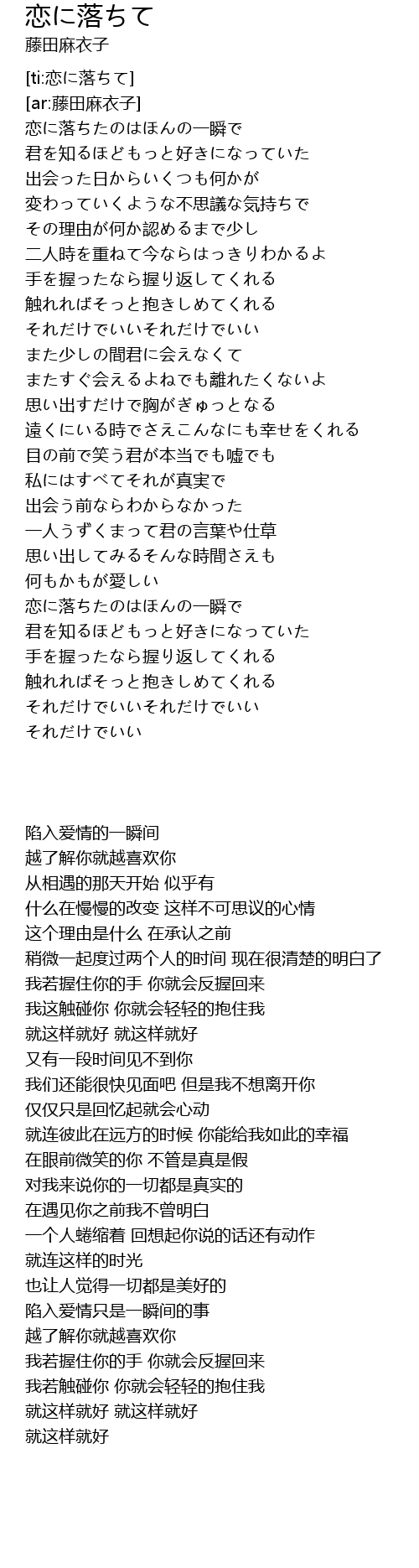 | [00:00.983] | 恋に落ちたのはほんの一瞬で |