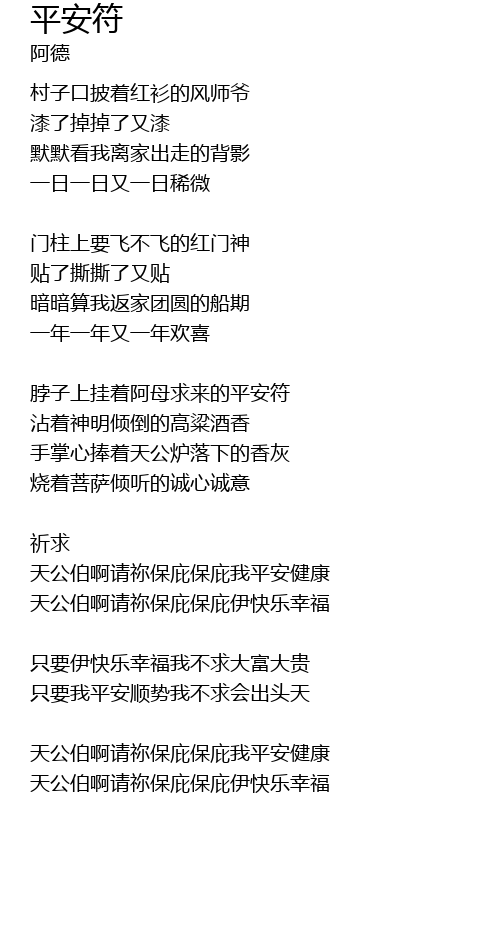 | 天公伯啊请祢保庇保庇我平安健康 | |