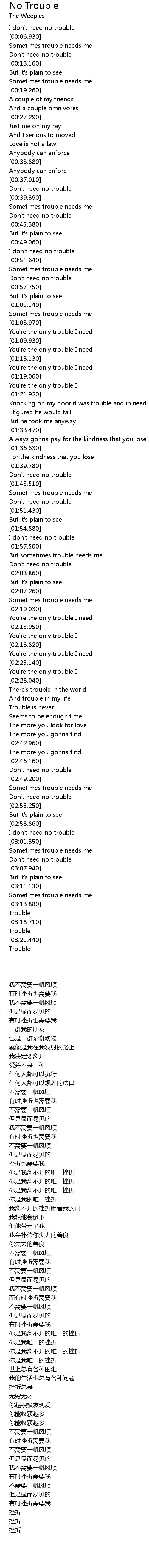 I don't need no trouble |