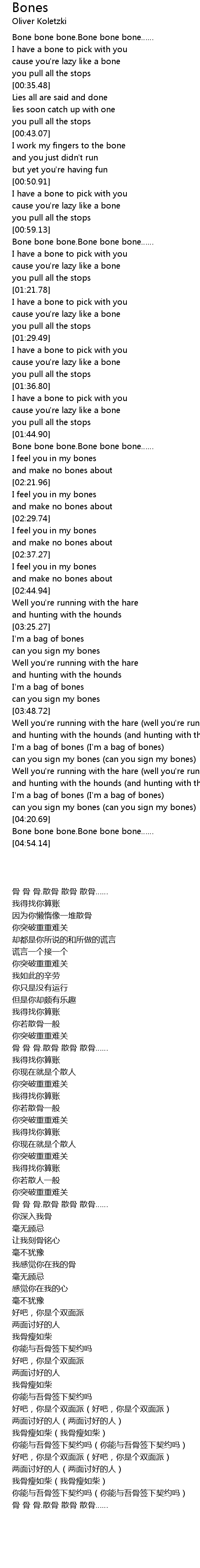| [04:23.64] | Bone bone bone. Bone bone bone |