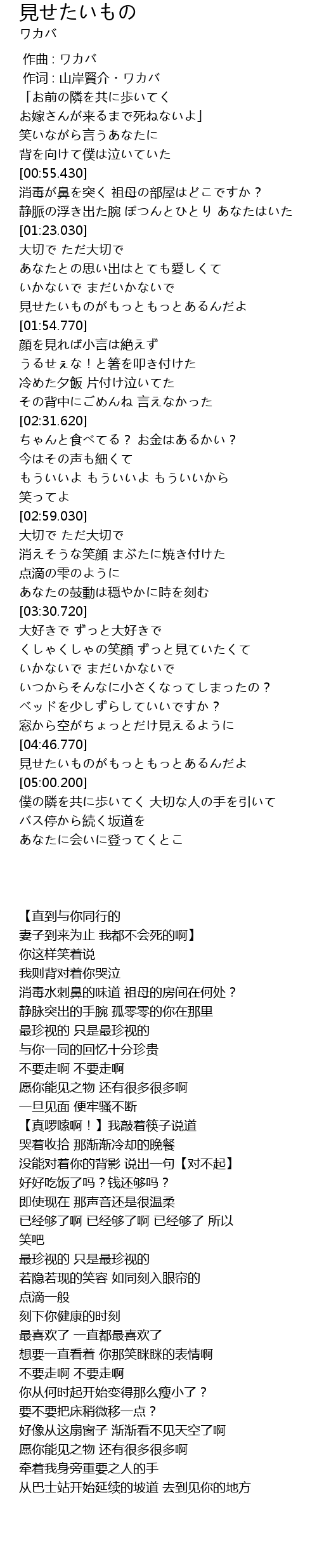 | [00:01.00] | 作词 : 山岸賢介・ワカバ |