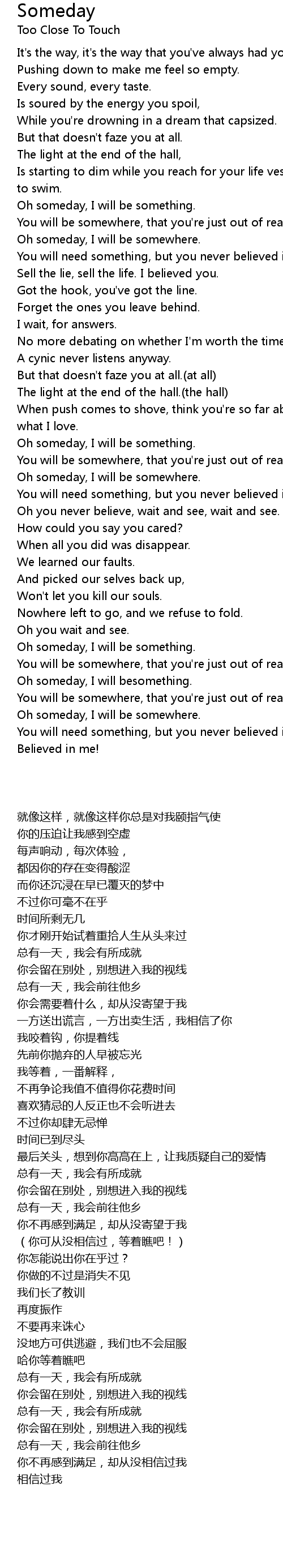 When push comes to shove, think you're so far above, make me doubt what I love. |
