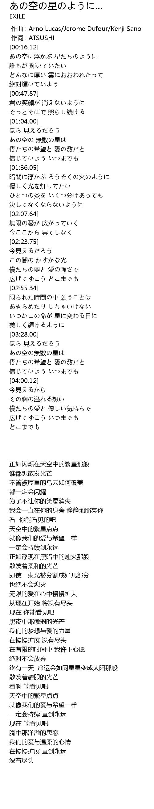 | [00:16.13] | あの空に浮かぶ 星たちのように |