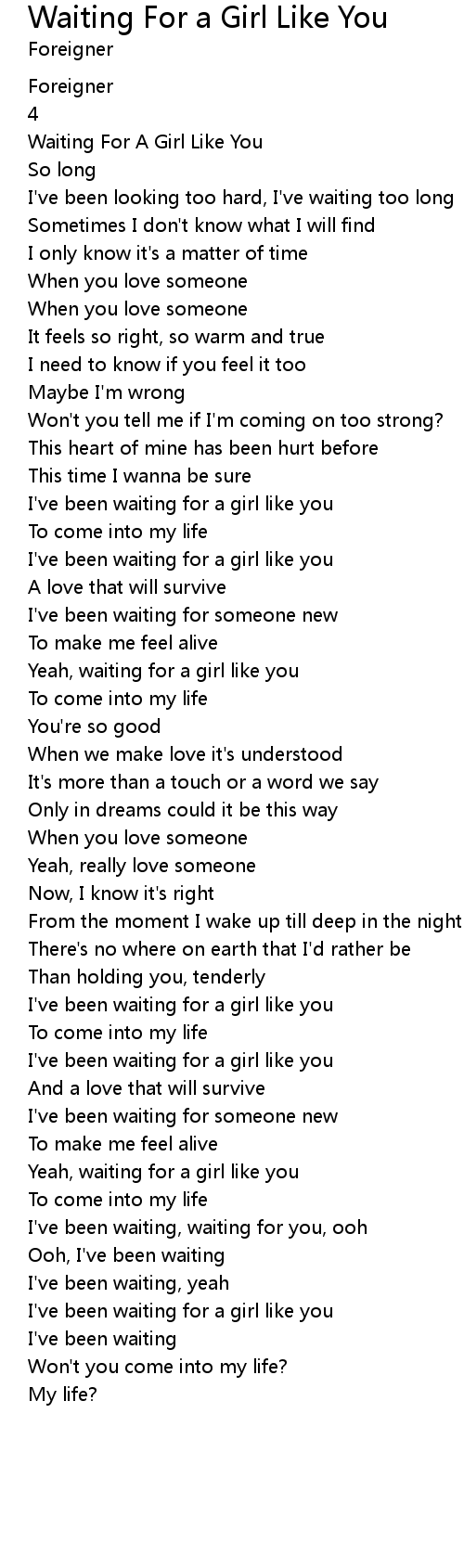 I've been waiting for a girl like you |