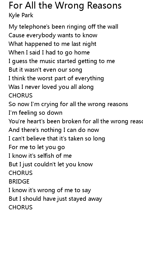 | You're heart's been broken for all the wrong reasons | |