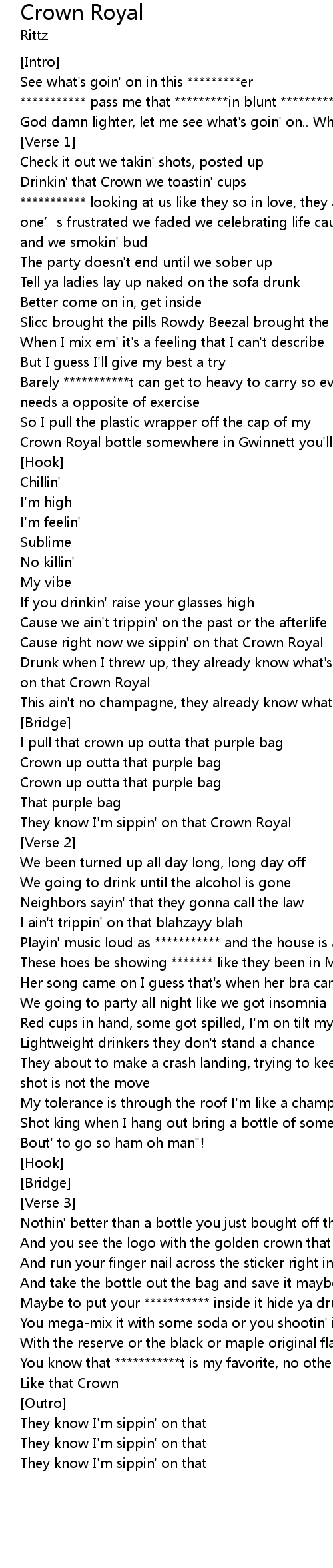 | Song | Crown Royal |