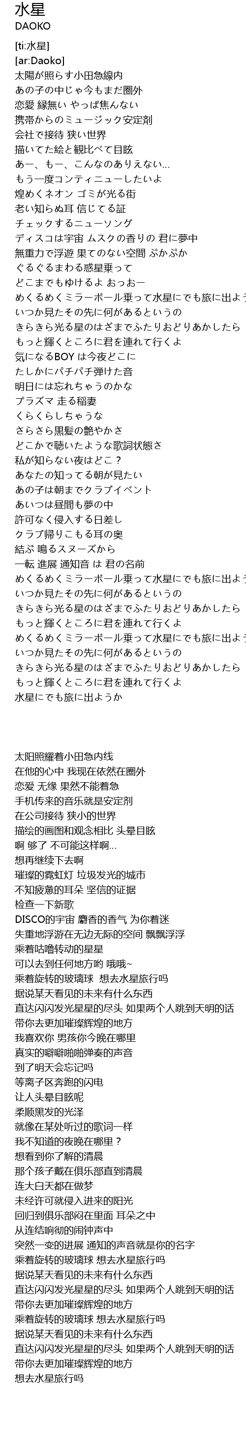 | [02:34.250] | めくるめくミラーボール乗って水星にでも旅に出ようか |