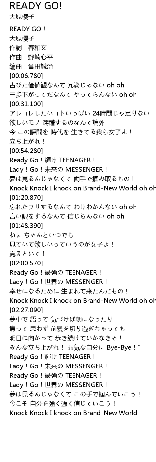 | [03:20.710] | Ready Go! zuì qiáng TEENAGER! |