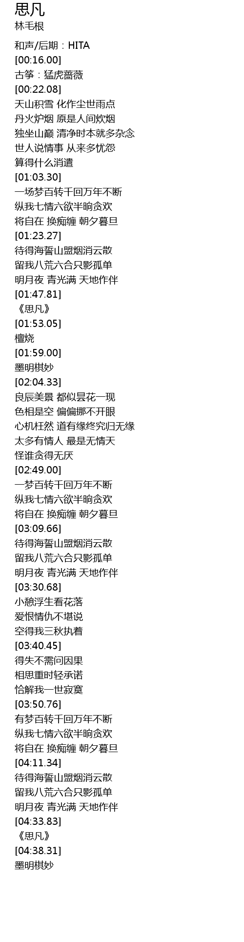 | [03:51.53] | yǒu mèng bǎi zhuǎn qiān huí wàn nián bù duàn |