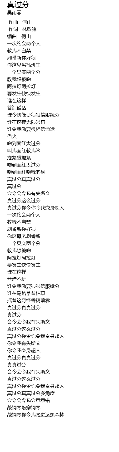 | [02:06.197] | zhēn guò fèn zhè me guò fèn |