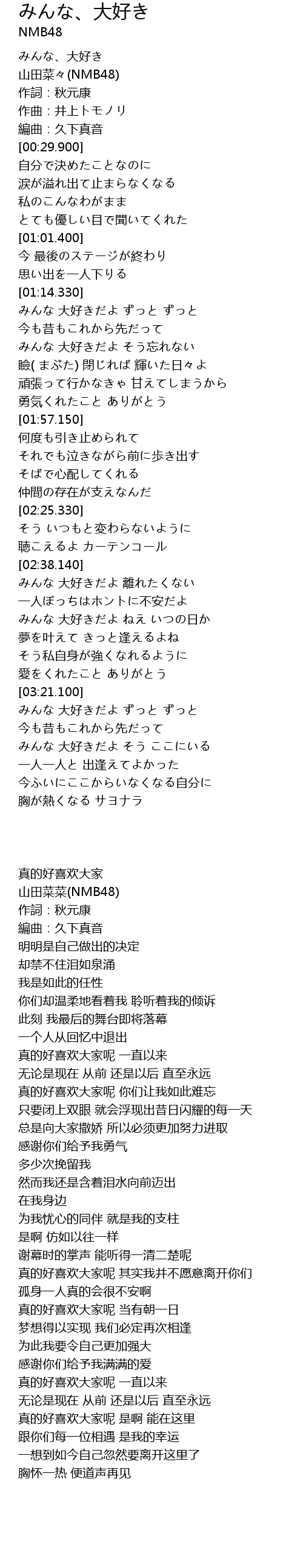 | [00:00.000] | みんな、大好き |