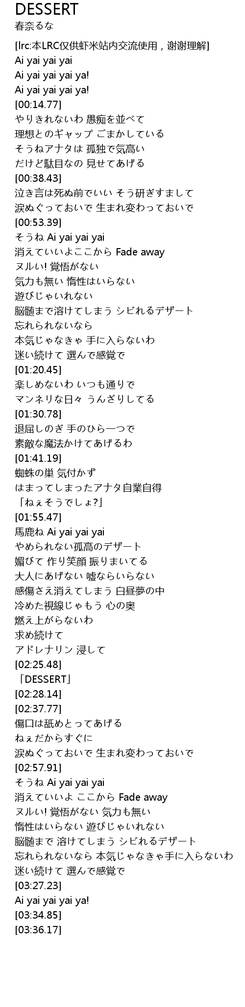| [03:10.40] | 脳髄まで 溶けてしまう シビれるデザート |