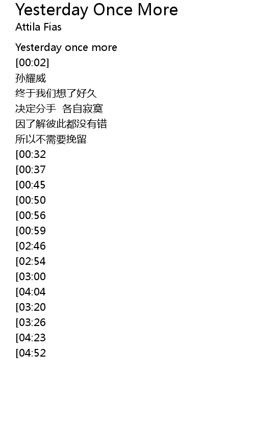 | [02:22][00:45] | wo yi jing gao bie zuo tian de wo |