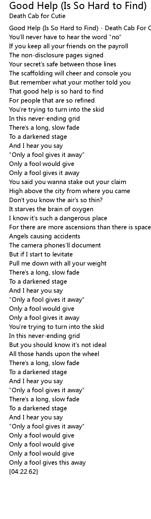 Good Help (Is So Hard to Find) - Death Cab For Cutie |