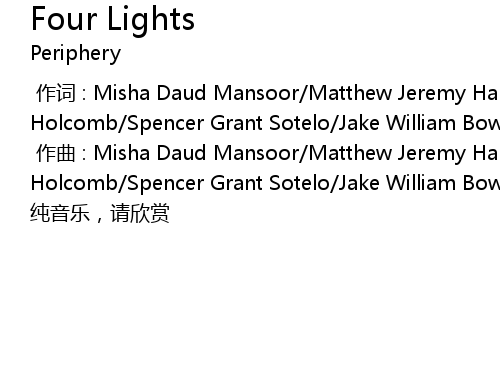 | [00:01.000] | zuò qǔ : Misha Daud Mansoor Matthew Jeremy Halpern Mark Hulett Holcomb Spencer Grant Sotelo Jake William Bowen Adam Getgood |