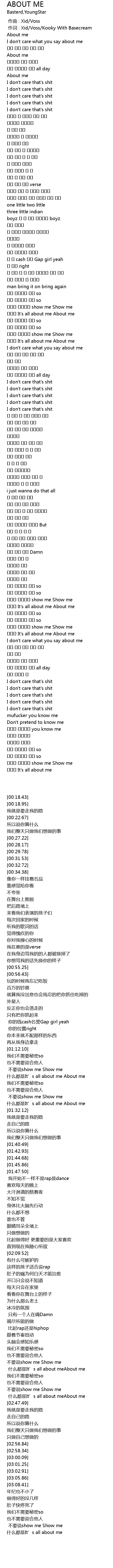 | [01:20.56] | 뭐래도 It's all about me About me |