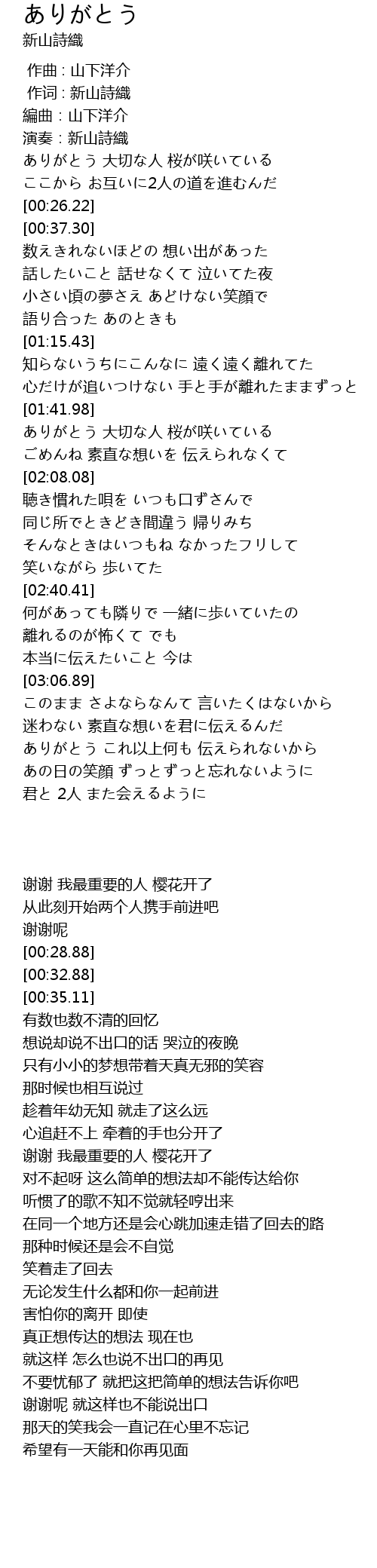 | [00:00.00] | 作词 : 新山詩織 |