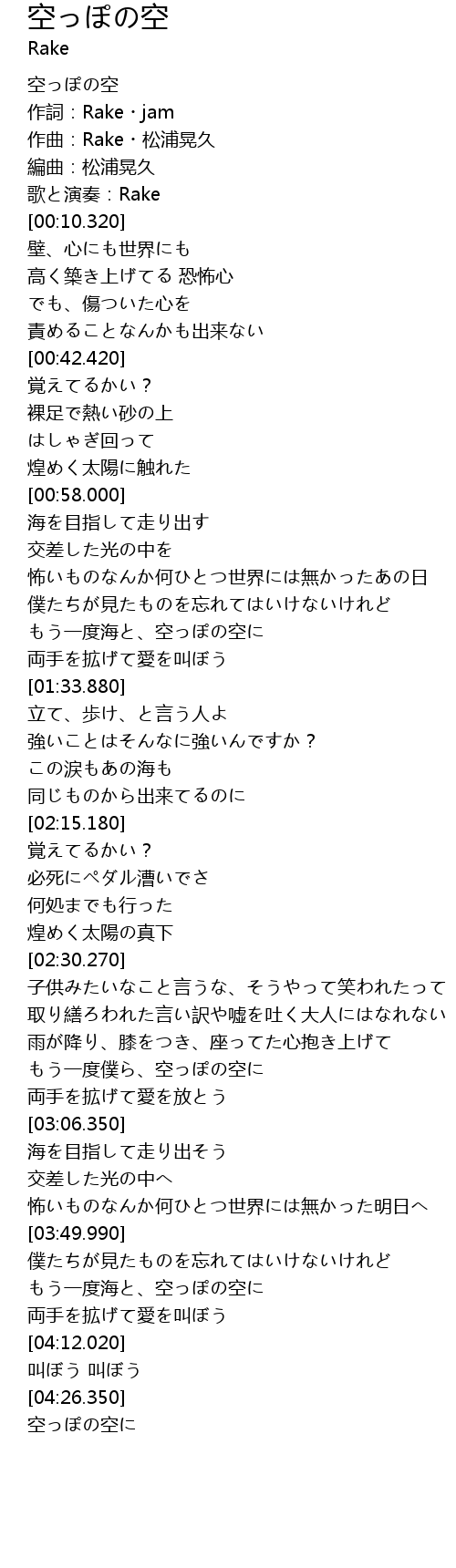 | [03:58.090] | もう一度海と、空っぽの空に |