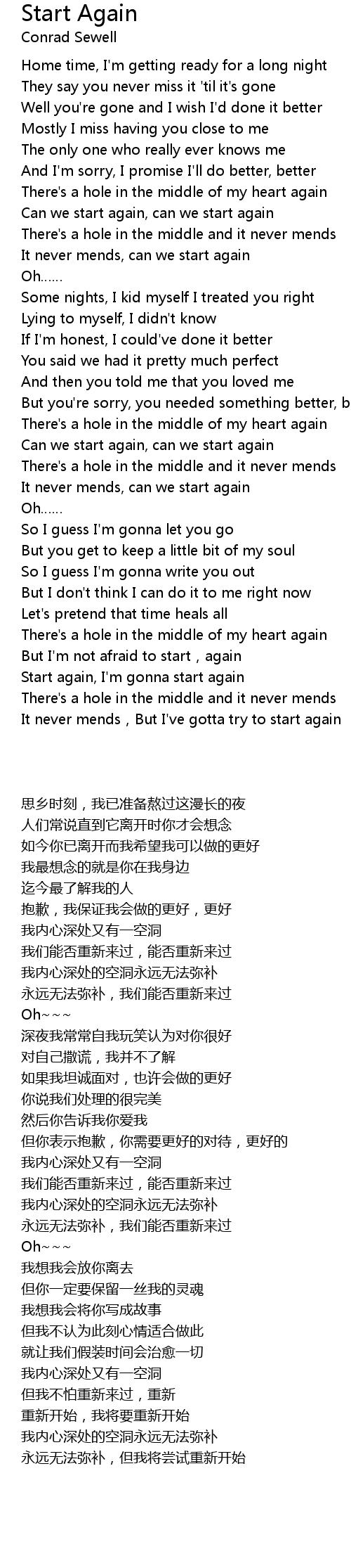 | [00:54.51] | It never mends, can we start again |