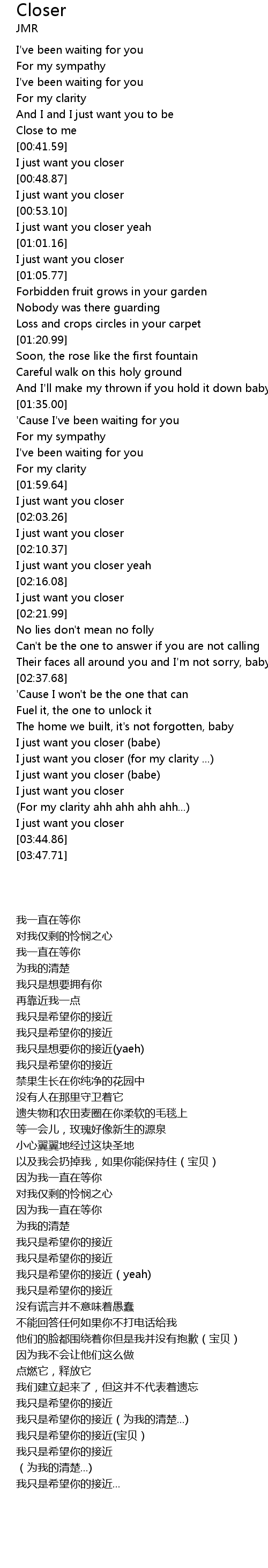 | [02:57.54] | I just want you closer (for my clarity ...) |