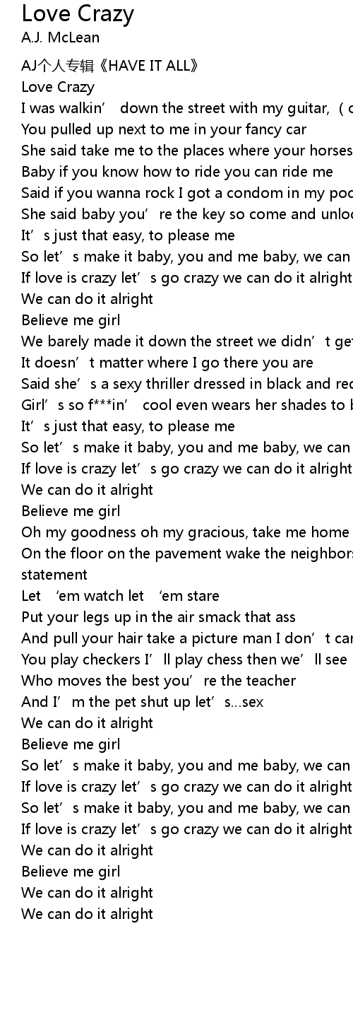 | [00:52.44] | If love is crazy let’s go crazy we can do it alright |